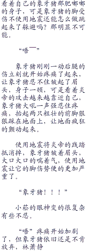 可炎帝不是还在对面释放绝招的吗?怎么就到了自己眼前?象牙猪震惊的透同事也疑惑炎帝怎么会忽然出现在自己的身前。