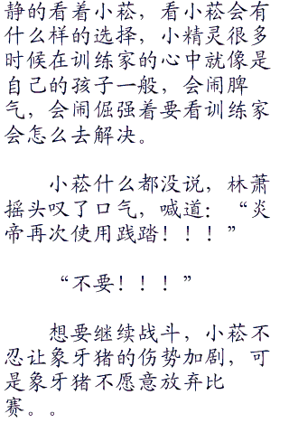 之前还在赛场的对面使用喷射火焰的炎帝已经冲到了象牙猪的身旁,象牙猪都已经能够闻到炎帝身上那股自己很讨厌的火焰气息。