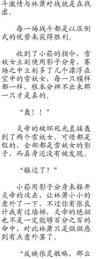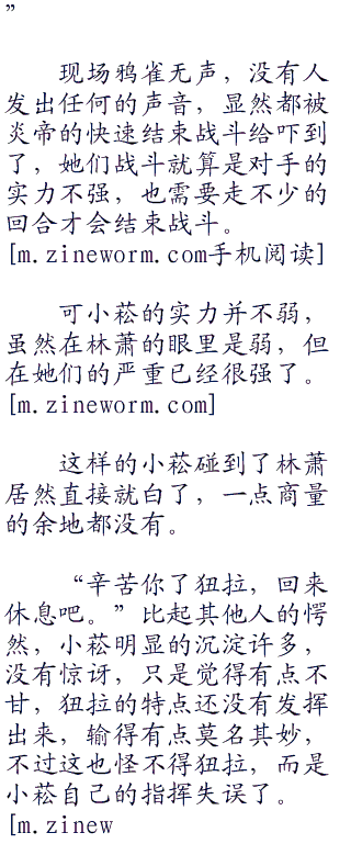炎帝一招击败了狃拉,观众席上,小光四人有些愕然,战斗进行的太快,准确的说是狃拉失败的太快,让人感觉有点不真实,仅仅是一个大字爆而已!连站在赛场边上的老裁判都面露苦笑,小菘战意高昂的与林萧战斗,希望林萧能够拿出自己应有的实力出来,可结果居然是这样,一个怒吼破去了高速移动与噪音的组合绝招随后一个大字爆就让狃拉失去了战斗能力。