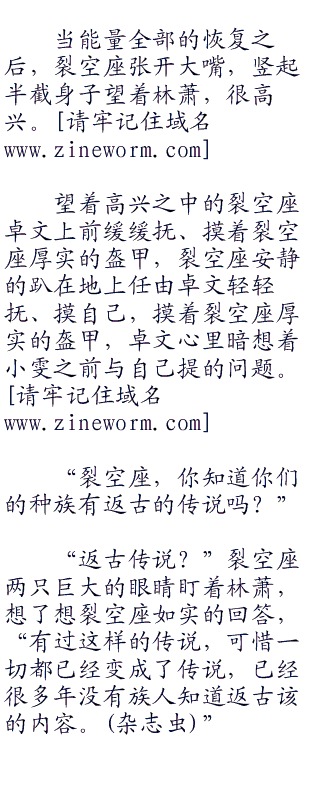 随着裂空座的能量逐渐的恢复,它有不振的精神也逐渐的恢复过来。