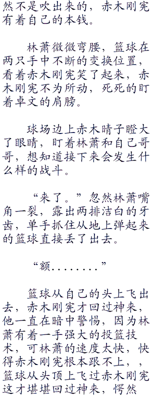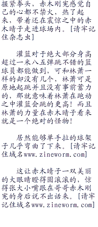 湘北有着赤木刚宪这个神奈川县最强大的中锋,只要其他的位置能够弥补,冲上全国冠军不是梦话,林萧也会帮助赤木刚宪走到那一步,不用猜也知道,在进入湘北高中之后系统随之而来的任务绝对就是让自己加入湘北篮球队,然后再一路直冲获得最终的全国冠军。