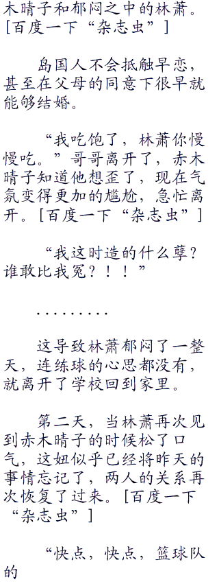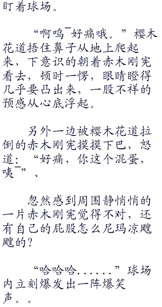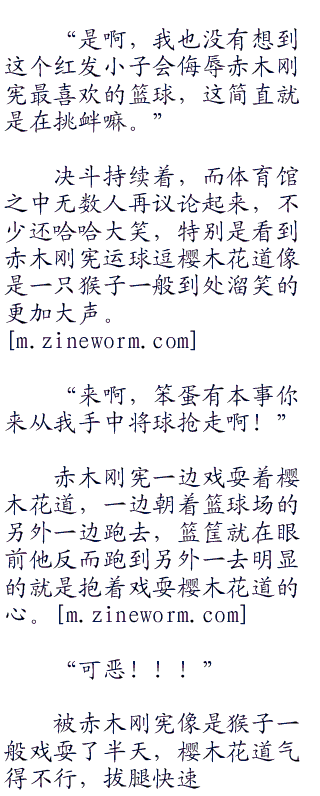“你们真的很有问题耶,难道是.........”赤木刚宪盯着两人暗想是不是早上的礼物是林萧送给自己妹妹的礼物妹妹不好意思才会这样,不过林萧是转学生,妹妹又对流川枫有那种朦胧的意思,合适吗?