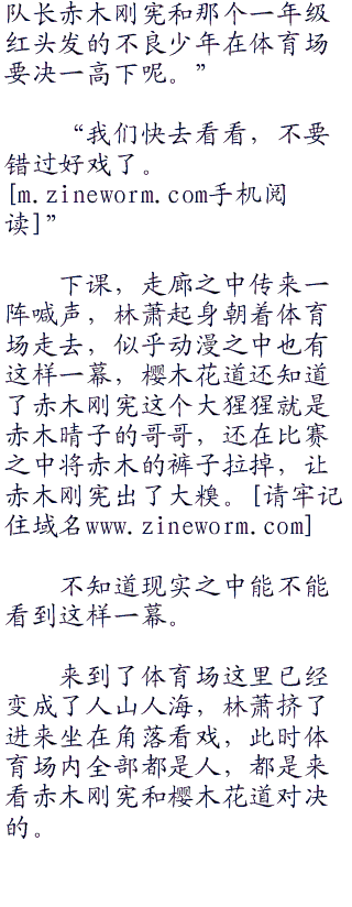 “要不要暴揍樱木花道一顿呢?”林萧捏着下巴考虑着,直到放学赤木晴子红着小脸来找自己才回过神来。