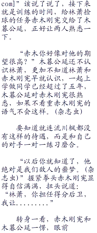 “你还真是........”赤木刚宪忽然感到有点头疼,这或许就是天才的自信吧,摇摇头赤木刚宪还是说道:“球队内原本有着合适的控球后卫,所以我还是希望你能够将位置调换一下,到大前锋或者是得分后卫上面。”
