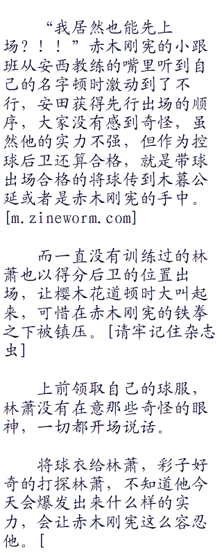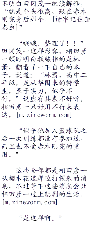 “咦~那个人,好陌生啊。”陵南的教练田冈茂一疑惑的看着林萧,感到奇怪,没有听说过湘北多了这样一个人啊,而且人高马大的。