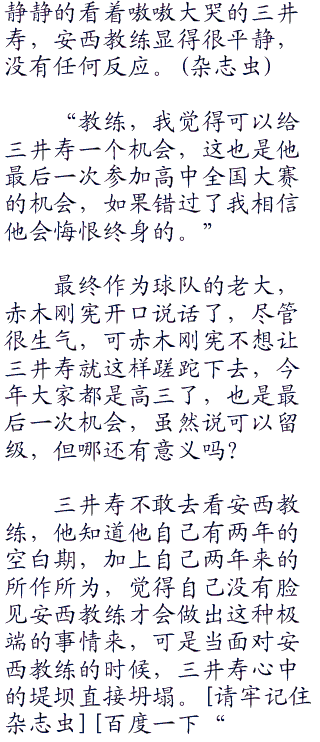 如今在安西教练身前,三井寿将自己的所作所为全部都交代了出来。