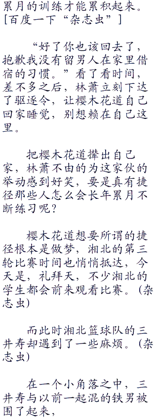 摇摇手指,林萧很坚决的告诉樱木花道没有任何的捷径可以走只能长年