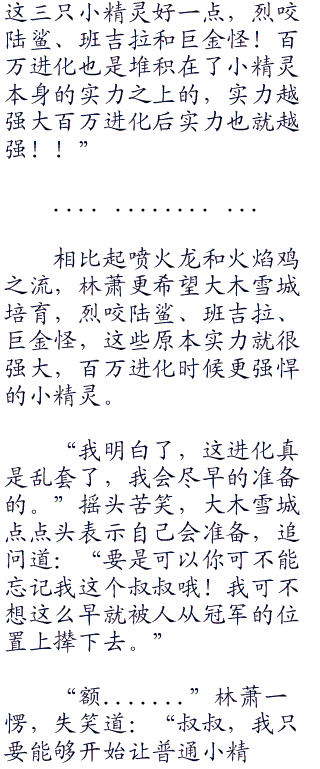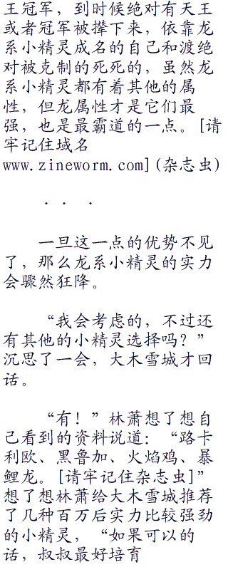 顿了顿,林萧开口道:“可是入股我告诉你以后一些普通的小精灵都能够战胜那些传说小精灵你相信吗?”