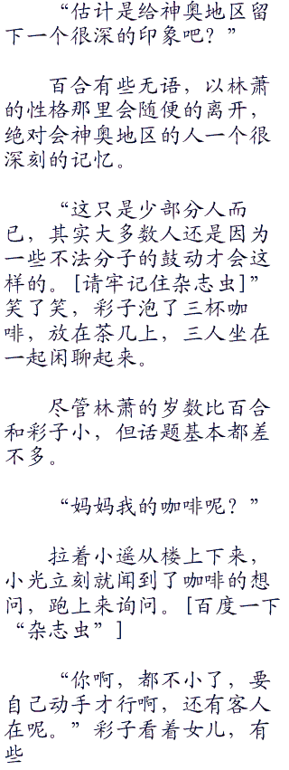 忽然彩子和百合来到身后,林萧转身笑道:“老师,很厉害呢,我都没听小光说过你是老师。”
