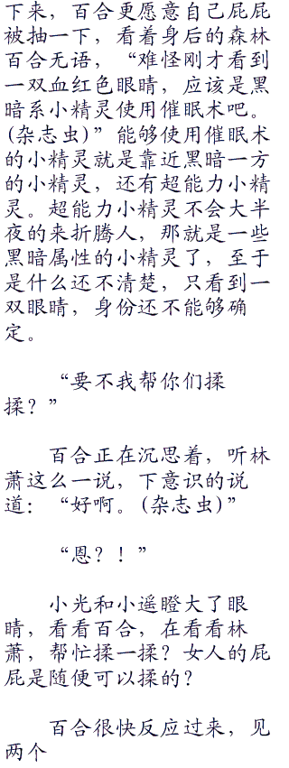 不对,忽然林萧看到小光和百合的眼睛是闭着的,也就是说这不是在闹腾,而是两人中了催眠术。