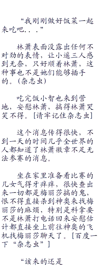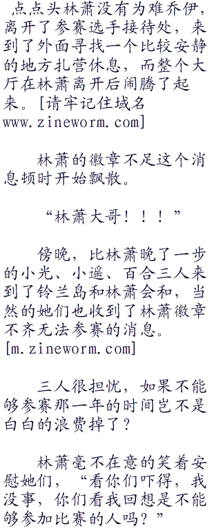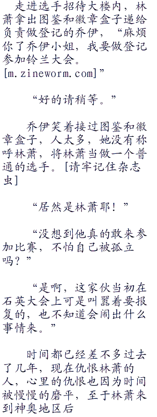 从亚诺的背上跳下来,林萧独自一人朝着会场的方向走去,在会场的不远处是一个村子,因为会场的存在而新起的,村子叫做选手村,是专门接待那些参赛者的地方,至于观众们只能够在选手村内自己找地方住宿,或者是在外面露营。