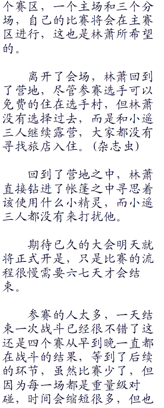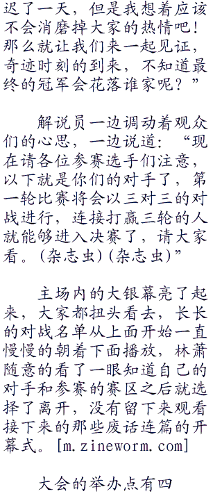 霸占场地是小事最多就是让大会推迟一点,但是如果林萧发怒直接将会场推平大闹一场的话........那神奥地区将会变得无比的热闹。