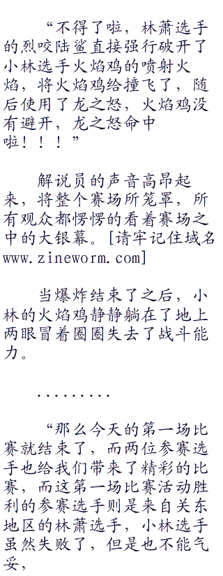 裁判这边才开始宣布比赛的开始,小林就大喊一声让自己的火焰鸡发动了攻击。