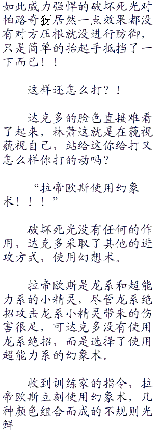 在解说员的大喊下,裁判也大声宣布道:“那么帕路奇犽对战拉帝欧斯战斗正式开始!!!”