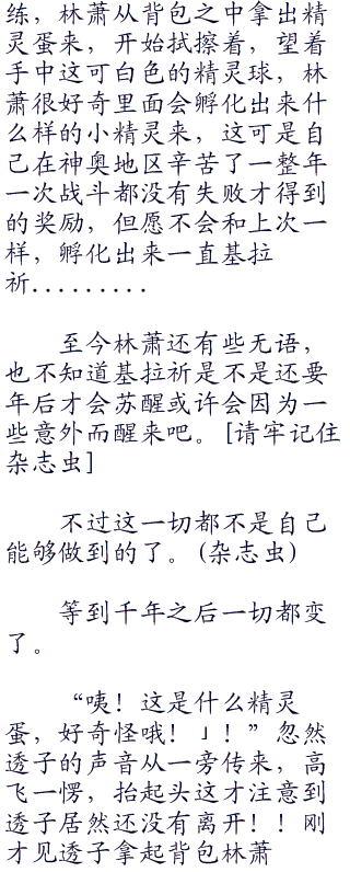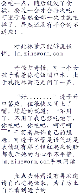 才吃了几口林萧就发现,透子在盯着自己看,顿时失笑,道:“怎么你还没吃饱吗?要不是再吃一点?”嘴上是这么说的可林萧依旧好奇,那么多的饭菜透子一个小女孩是怎么吃下去的!!