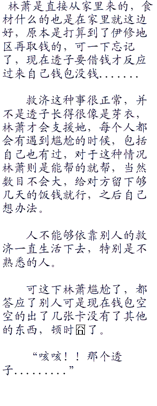 想了想林萧轻笑起来,也不是每一个人都会认识自己的,自己似乎有点自恋了,不过不认识也好。