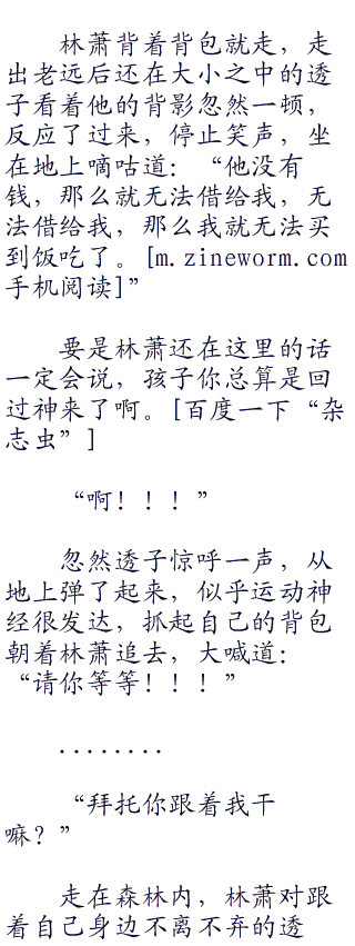 将藤藤蛇收回来,林萧把精灵蛋塞进了背包之中,背起背包转身就走朝着三曜市走去,让透子慢慢笑,这个丫头似乎缺少一根筋,还很缺心眼,自己没钱她就借不到钱,也就无法买东西吃,这么简单的问题都不懂还笑?!