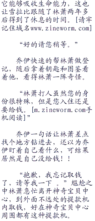 走进神奇宝贝中心内,林萧拿出图鉴和精灵球,“你好乔伊小姐,我想要一个房间,另外麻烦你帮我将小精灵的体力恢复一下顺便治疗一下。”