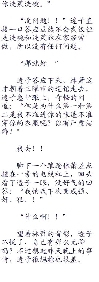 听着洗手间内不断传来的水声和歌声林萧感觉自己绝逼的就是被坑了,被一个笨妞给坑了,难怪这笨妞会说自己和她一样笨!!怎么感觉自己比她笨呢?