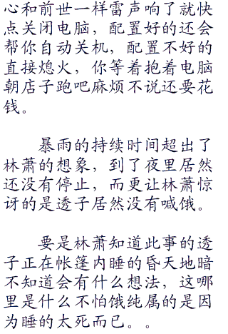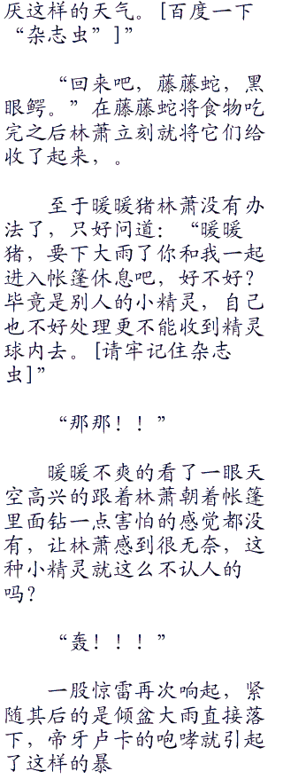 快速的将饭菜吃完,林萧拿出食物来喂养小精灵,透子则满意的拍拍肚子,感到吃饱后最幸福了。