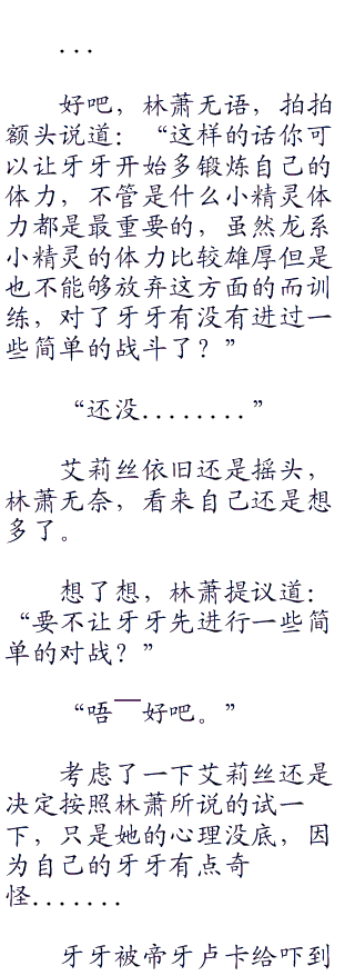“这不可能我的牙牙可是没有那么小的胆子哦!”