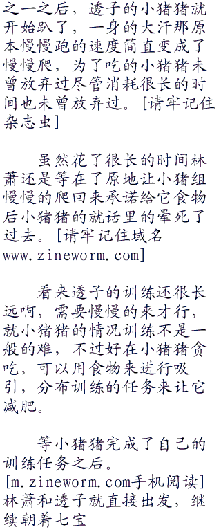这让林萧认识到,透子的小猪猪不仅是胖的过度而且是已经懒得过度了,在透子得到它的时间内,小家伙到底走过路跑过没有.......