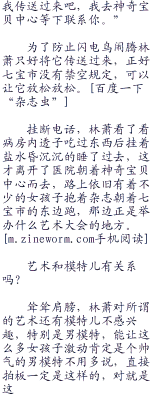 似乎七宝市在举办什么艺术会,还请了一些有名的模特前来助阵,这些人该不会是应该那些模特变得疯狂起来了吧?能够引起这样骚动的模特绝对是个大帅哥,林萧没有过多的在意,回到医院内,给透子弄了一些吃的。