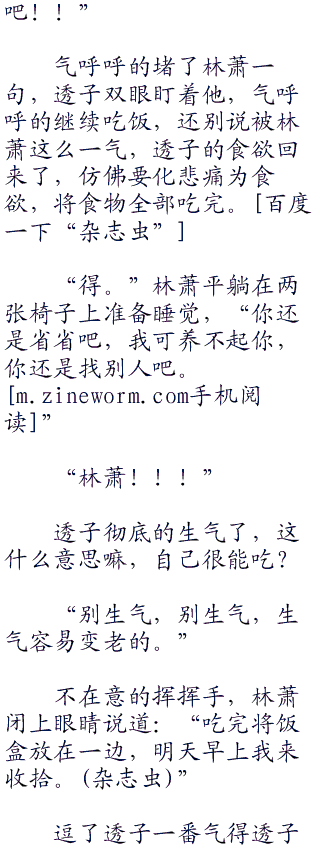 果然当林萧提着宵夜来到了医院的时候透子就哀怨的叫了起来。