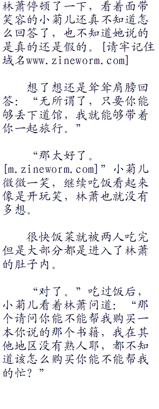 小菊儿很好奇,林萧是怎么丢下道馆随后出来旅行的。