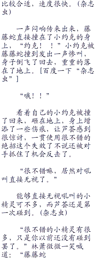 偏偏很不巧的藤藤蛇就差不多是属于这个类型的小精灵,虽然没有河马王那么自信,但是这个小家伙可不简单。