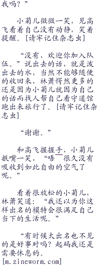 注意力从酋雷姆身上转移了过来,小菊儿看着高飞笑道:“我听取了你的意见,请人暂代了道馆,打算外出旅行了,你不是也对我发起了邀请吗?”
