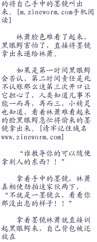 之间黑眼鳄将墨镜藏在了身后一脸的委屈,和郁闷,而林萧伸.着手一脸严肃的盯着它。