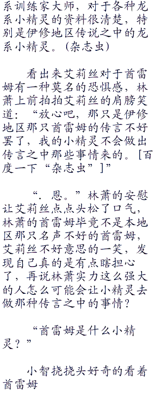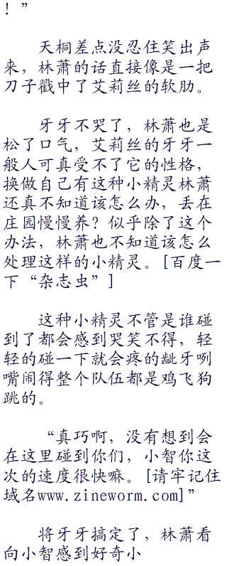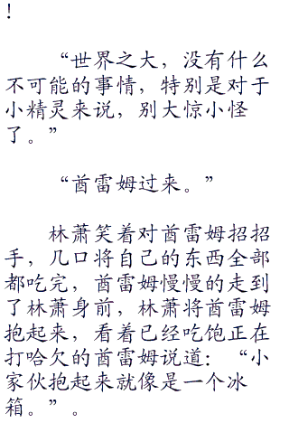 眼看艾莉丝和小智就要吵起来了,林萧感到头大急忙上前分开两人,抱起牙牙说道:“抱歉哦牙牙,我不知道你在里面,这是给你礼物哦,算是赔礼吧。”