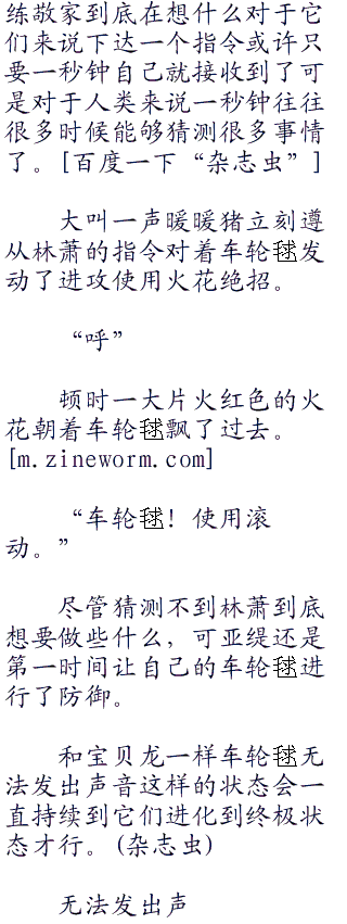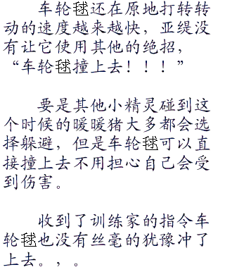 这也是大部分训练家不喜欢这种小精灵的原因所在,搞不好反过来将训练家自己本人弄伤可就不好了要知道不管是百足蜈蚣还是车轮毬、蜈蚣王都不是好惹的货色,百足蜈蚣容易受到惊吓,那时候可是胡乱攻击的,车轮毬你看它那一双阴沉的双眸就能够看出来很多的东西,至于蜈蚣王,有点类似乎陆地上的暴鲤龙。