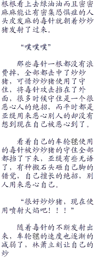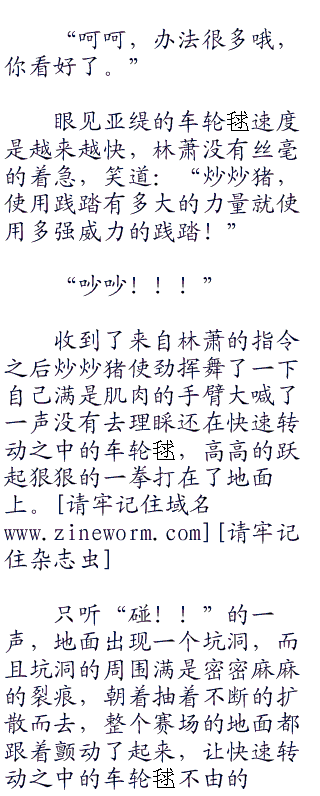 “你倒是很直接。”亚缇没有生气,笑道:“那么我就看看你将会使用什么办法来让炒炒猪击败我的车轮毬吧!!!”