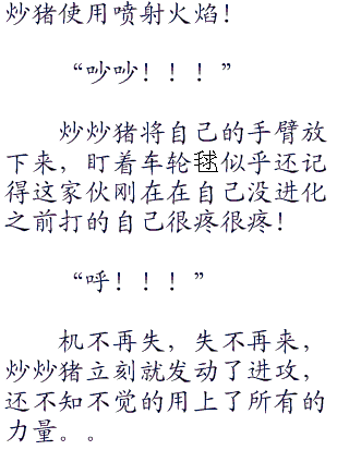 而且炒炒猪看起来很壮实,可是和女孩子喜爱的小精灵似乎有点不搭边啊,果然的还是电气系小精灵最漂亮最令人目眩神迷了。