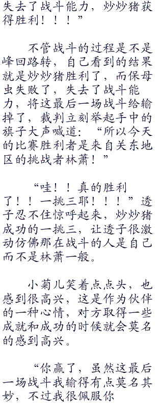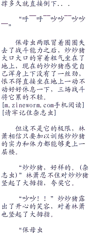 伴随着保母虫的一声惨叫和闷响声,在炒炒猪的强力冲撞之下,被撞得飞出去老远重重的落在了地上,弹了几下,身上带着不少的伤痕,看