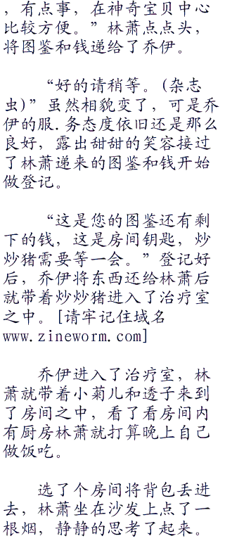 接下来任务林萧一边朝着神奇宝贝中心走去一边考虑着自己该
