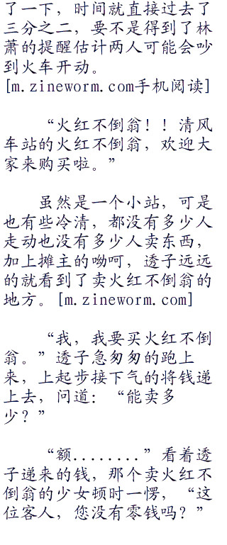 火红不倒翁在附近可是很出名的食物,大部分人来到这里都会选择购买一些,可惜时间有限只有三分钟的时间要是不能抓住机会那么一切都晚了。