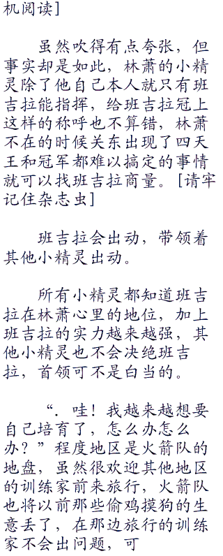 在没有进入百万进化之前,班吉拉是林萧手中普通小精灵之中势力最强悍的,就算碰到了亚雷等小精灵也能坚持战斗很长时间才会落败,而在拥有了百万进化之后班吉拉的命运开始慢慢的发生了改变,现在的它有了那个能力和其他小精灵开始角逐。