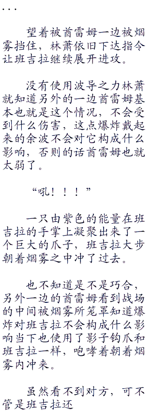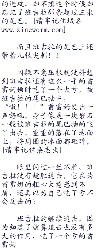酋雷姆重重的落在了地上,地面上的冰面再一次裂开来,可是当它才站稳一道黑影就横扫了过来。
