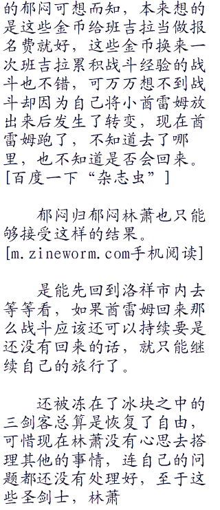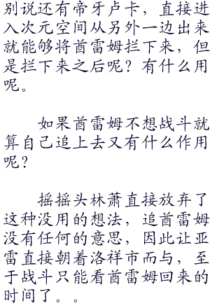 现在的林萧心里那个郁闷啊,早知道就不让小酋雷姆出来了,现在倒好,亏死了,真是亏得内内都没了。