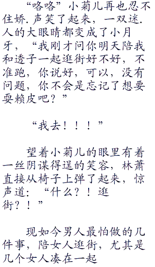 林萧答应了,就直接进入了小菊儿的圈套之中,让小菊儿忍不住笑了起来,林萧这才回过神来,似乎感到有点不对劲,“我刚才说了什么?”