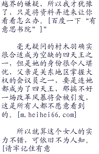 大木雪城立即解释,“还是一个了不得的人,我们都觉得她可能会变成第二个希罗娜,就是身份比较敏、感。”