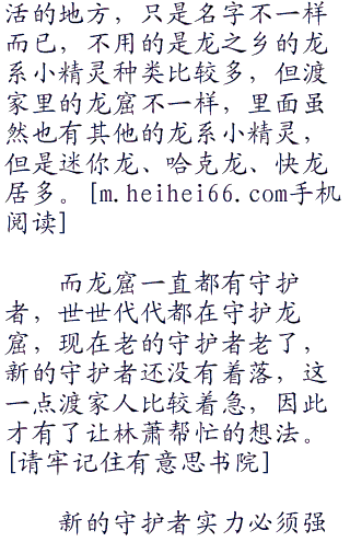“我能不严肃吗?”渡苦笑一声,无奈道:“是这样的,我家老头子,想请你到龙窟内去帮个忙,挑选一只小精灵,守护者老了。”