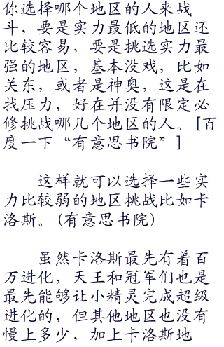 用自己的小精灵连接换着挑战一个地区的四天王和冠军可是没有那么容易的,如果失败了就失败,想要成为一个地区的冠军都要连接战胜四天王才可以,这都难倒了无数人,更被说还加上了一个实力爆表的冠军了。