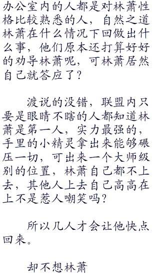 这样一来就等于大师就是联盟内的招牌人物,他们没有什么权利,但是他们代表的却是最顶峰的人,这样各地区的天王冠军们也不会担心,多出来一个顶级的人物会和自己抢夺权利,并且能够成为大师的人寥寥无几,少得可怜。