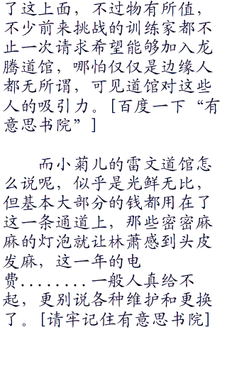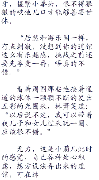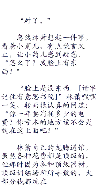 所以林萧的哭穷让小菊儿感觉他很无耻,但又觉得大家都是同病相怜,因为她那点工资其实并不高,每年自己的那个模特赚的钱不少都坑到了道馆内,不过为了追求完美和美丽,小菊儿也心甘情愿坑那么多钱进去。