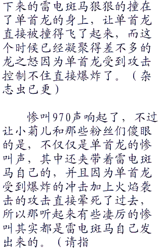 强大的金色电流从雷电斑马得身上猛的爆发出来,直接击中近在咫尺的单首龙。