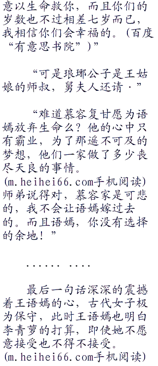 三人不知道什么情况,但是看着王语嫣脸色苍白无比,迷茫黯然的舅夫人,阿碧就知道昨天晚上发生了什么大事。